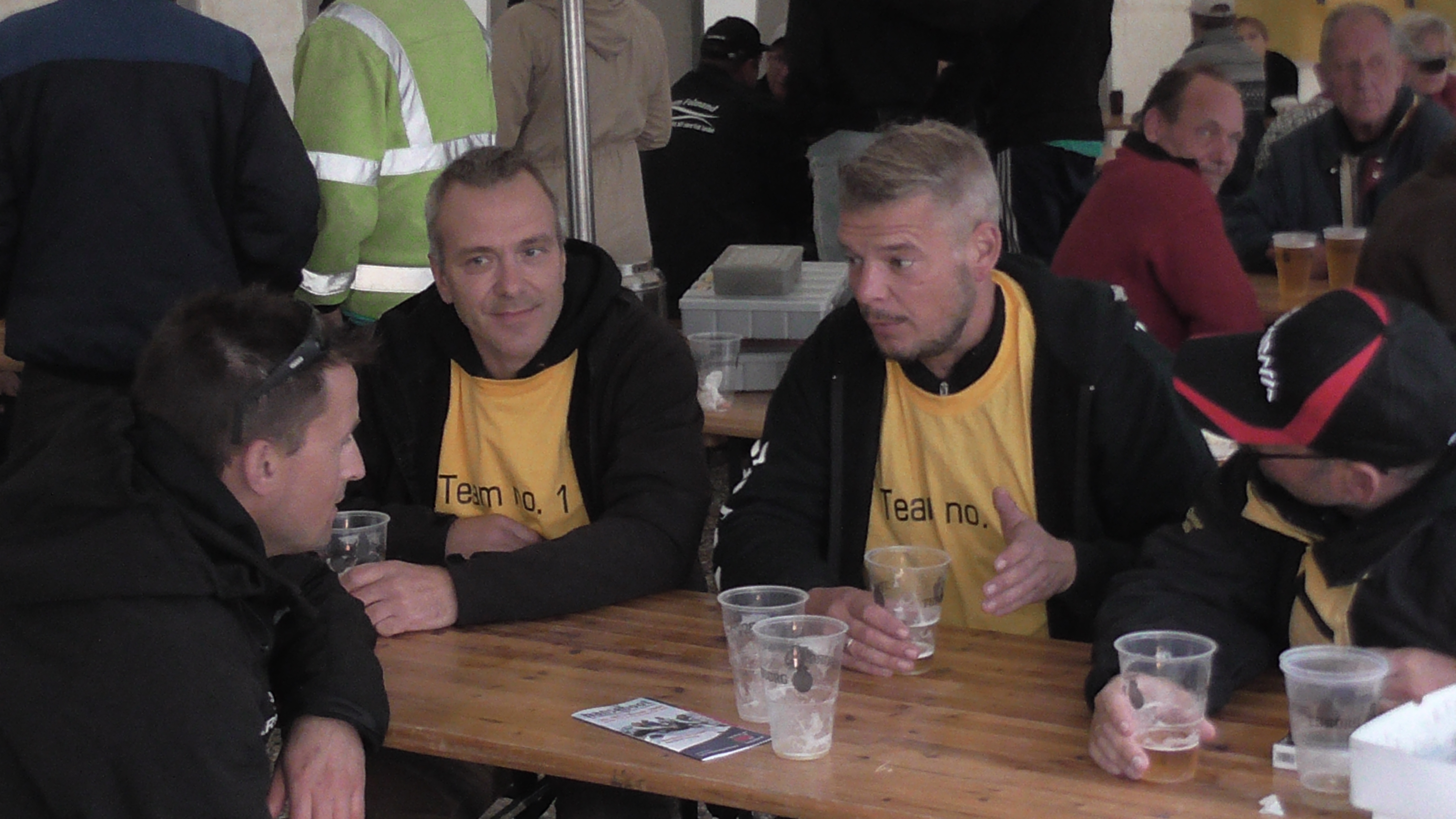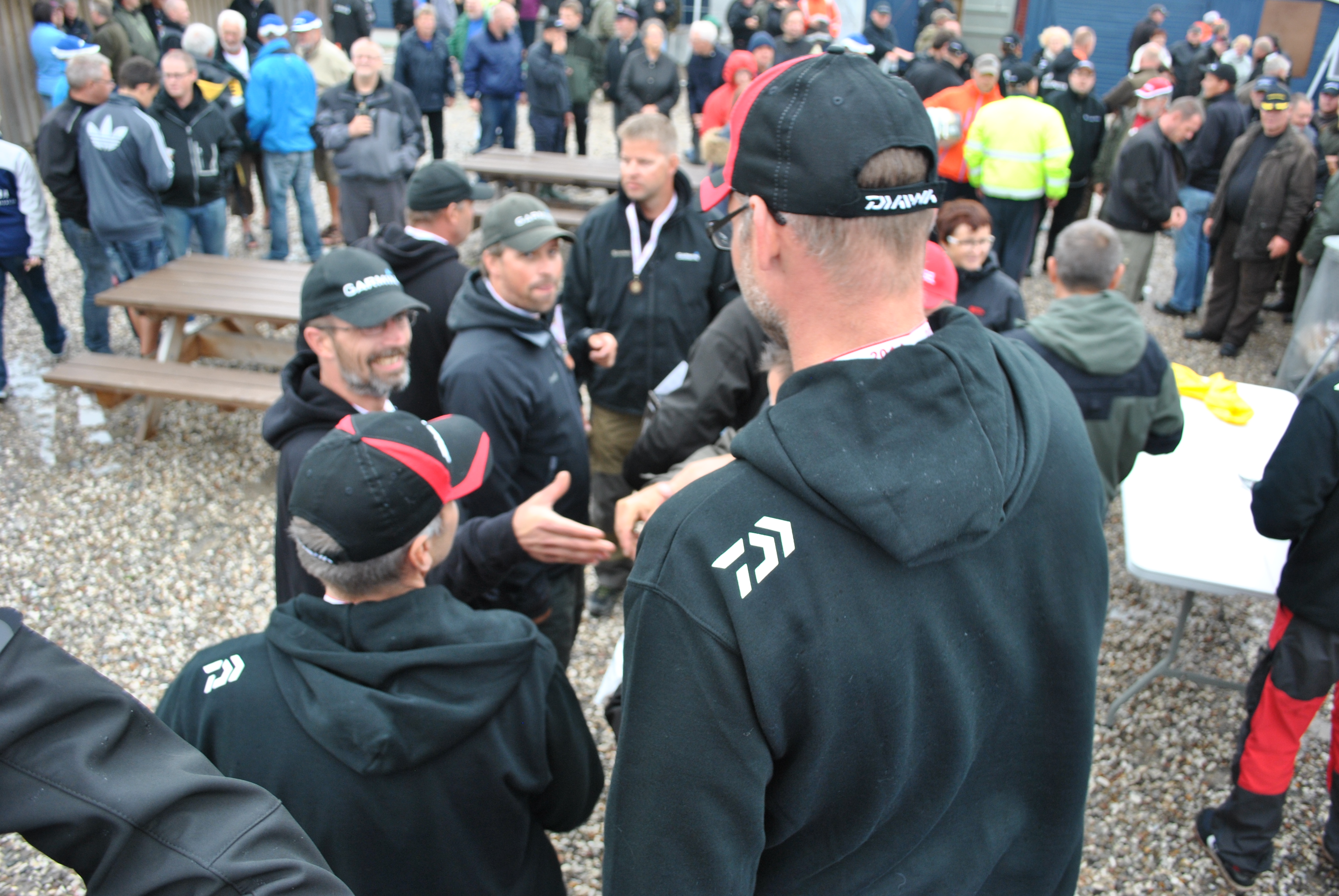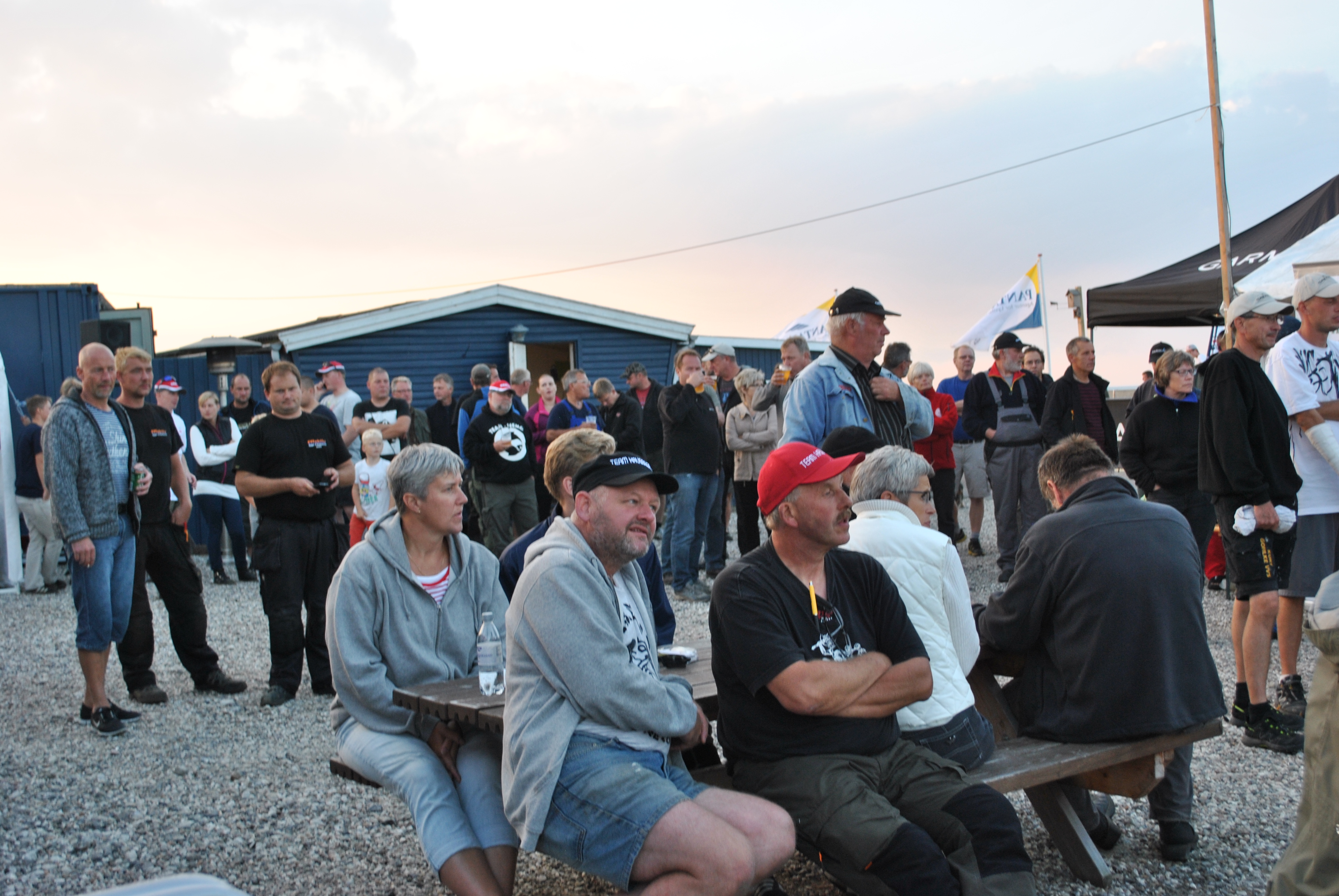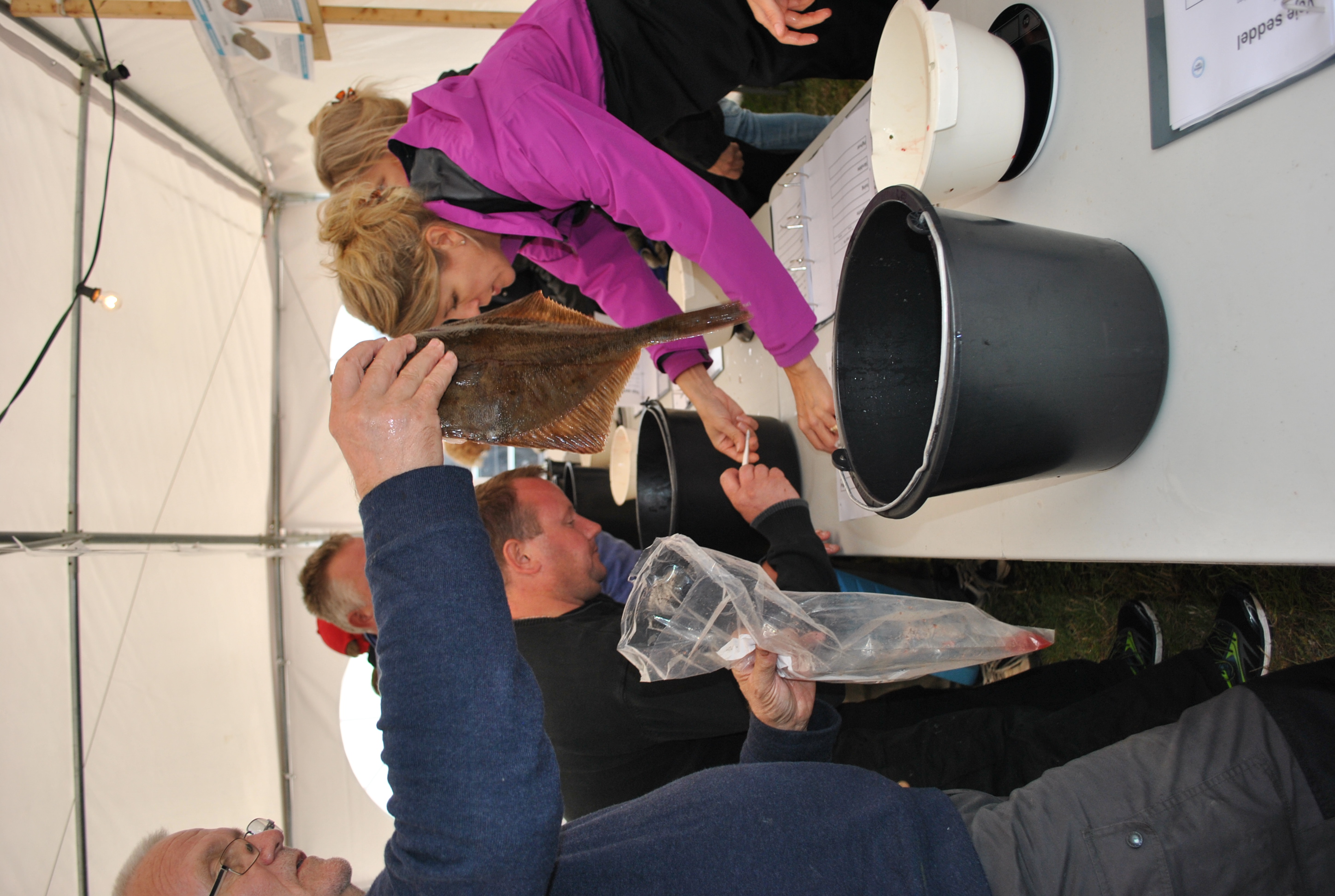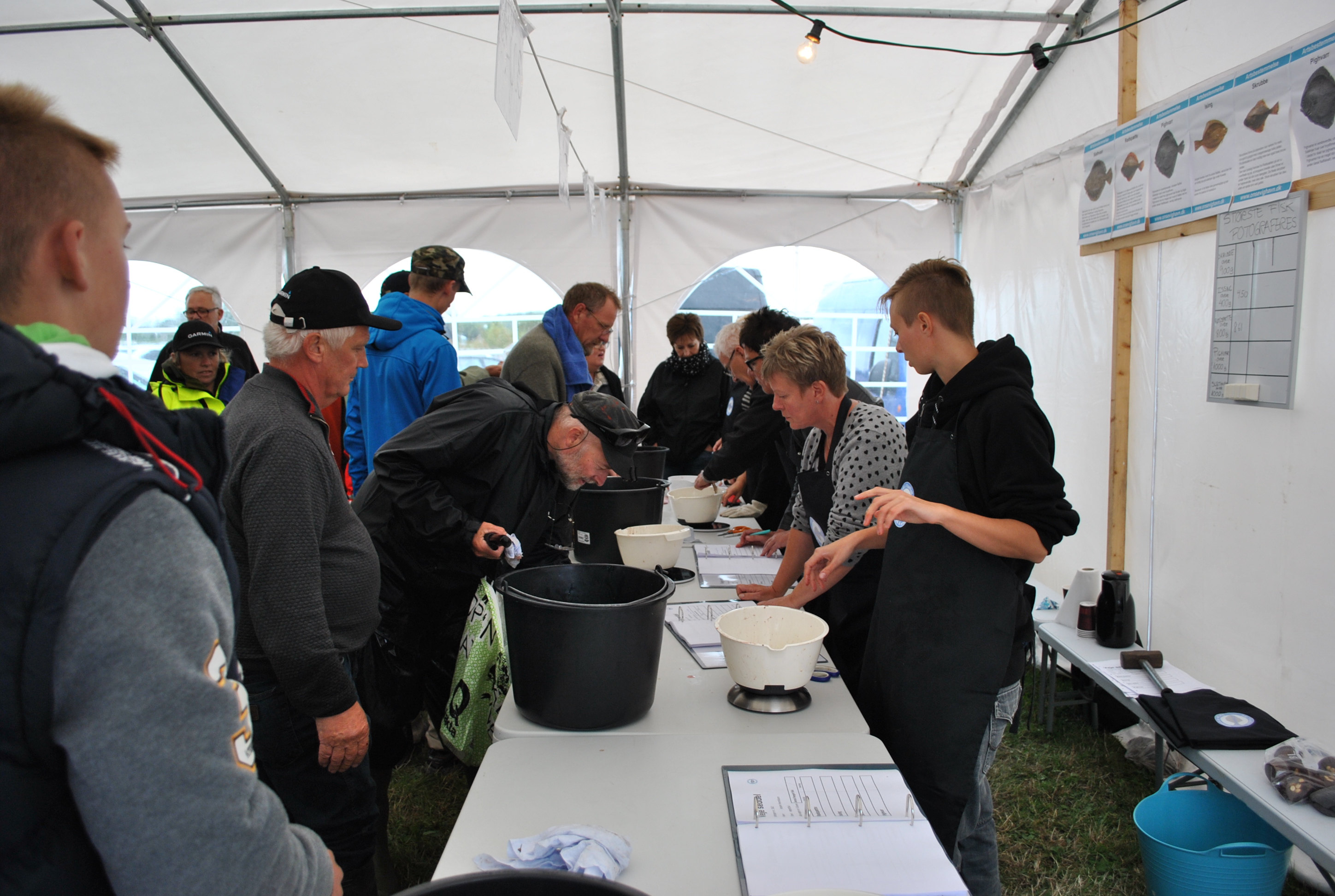Lørdag eftermiddag/aften (190 fotos), indvejning, kåring af vinder af flå/fileterings konkurrence, gul føretrøje, aftensmad.