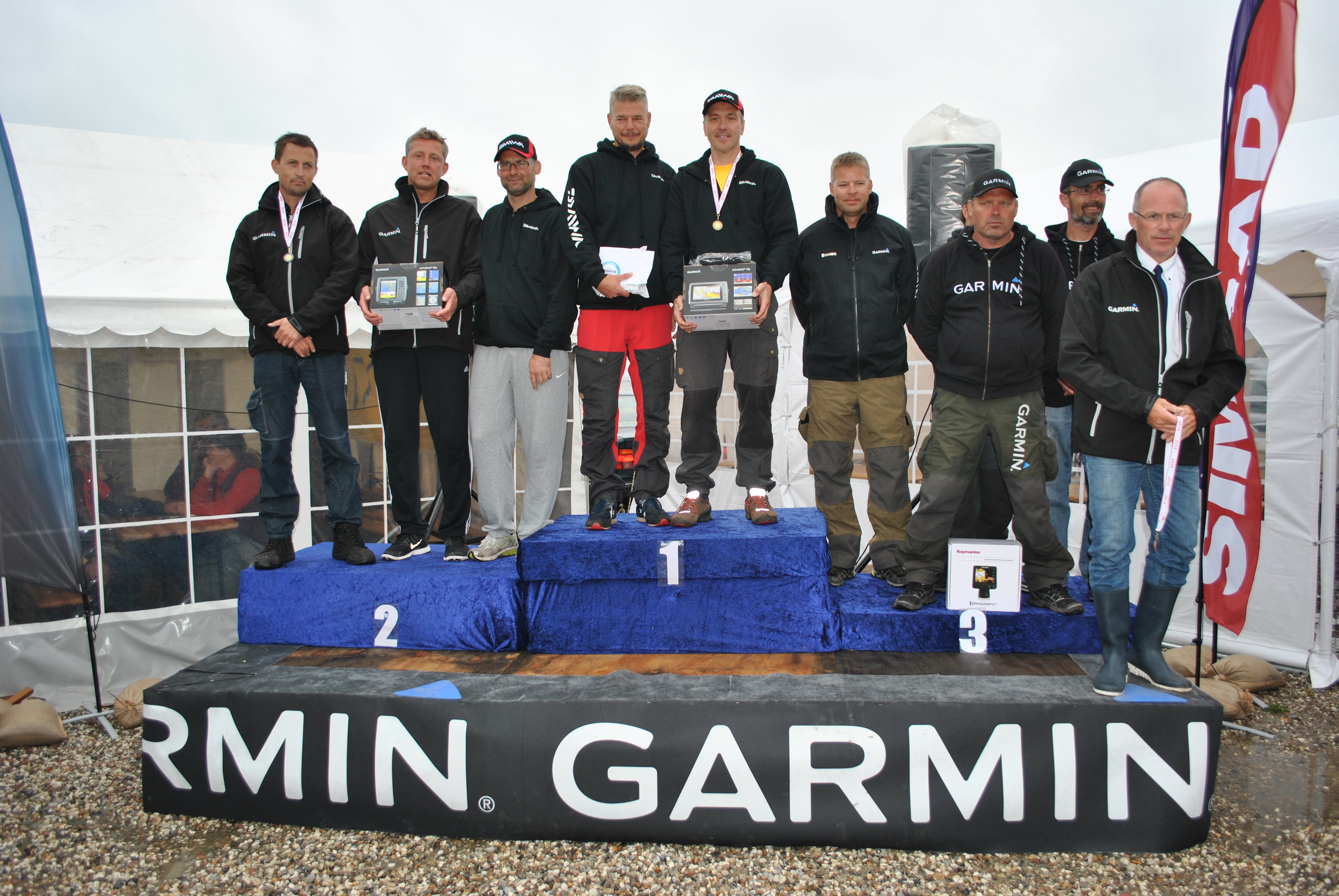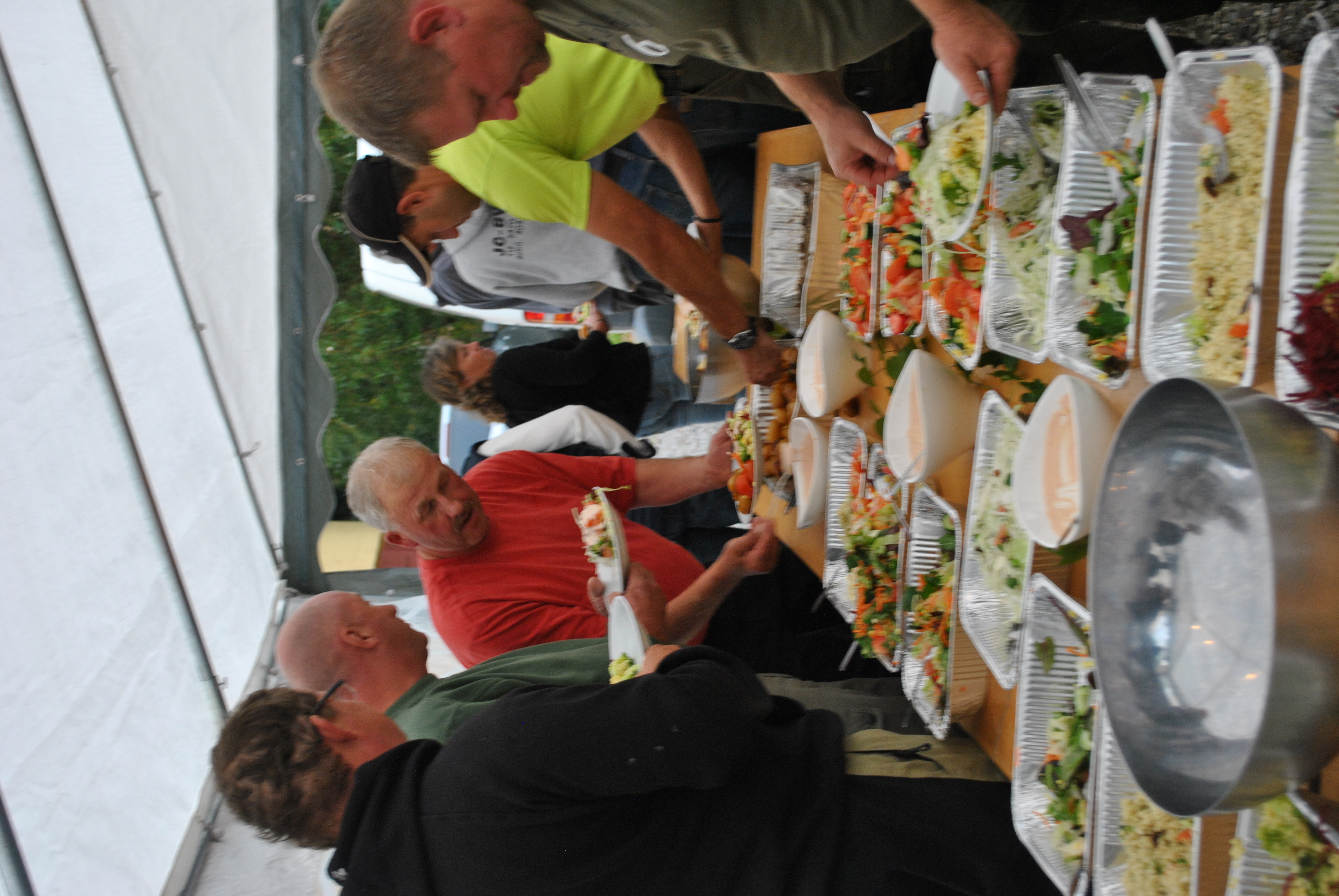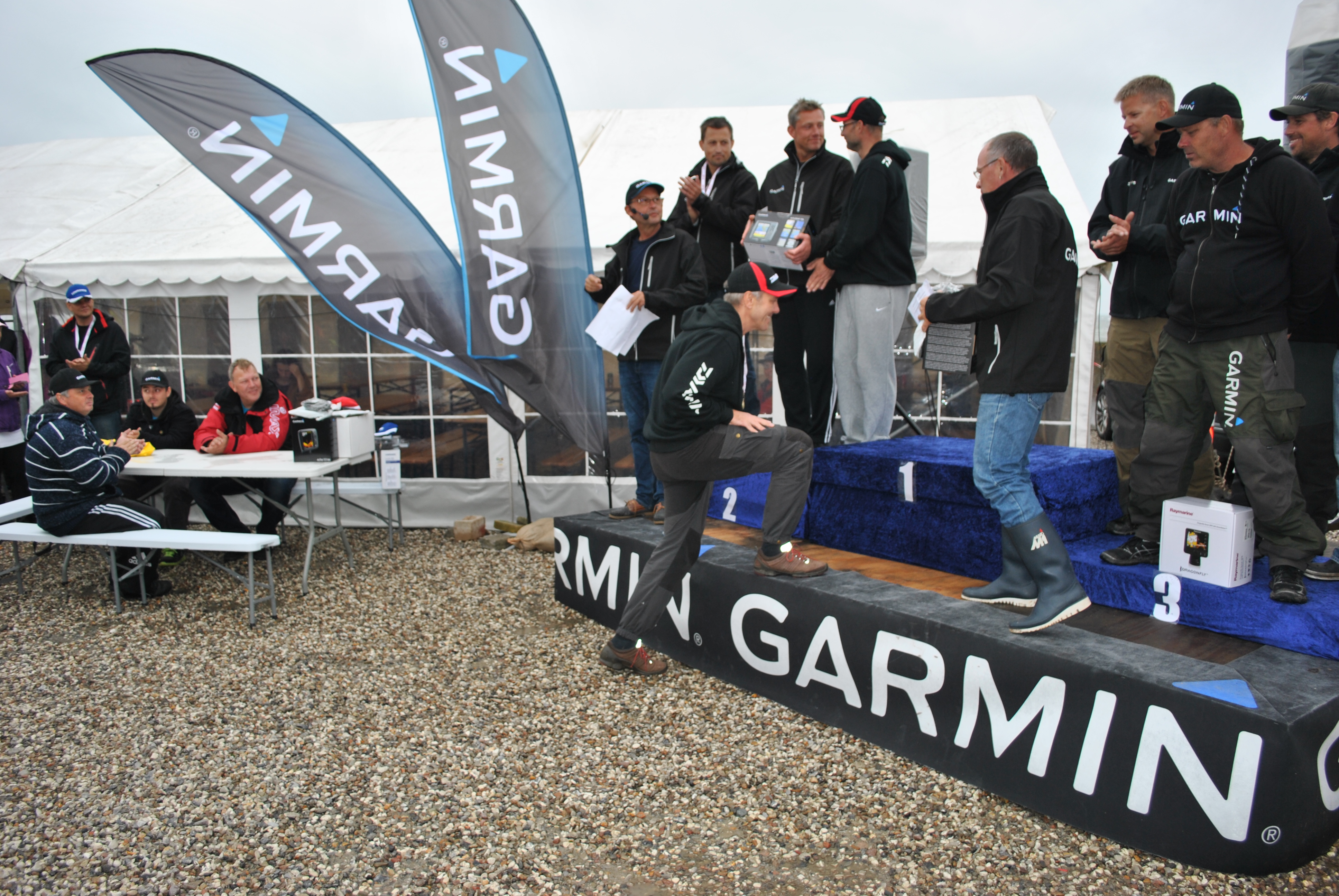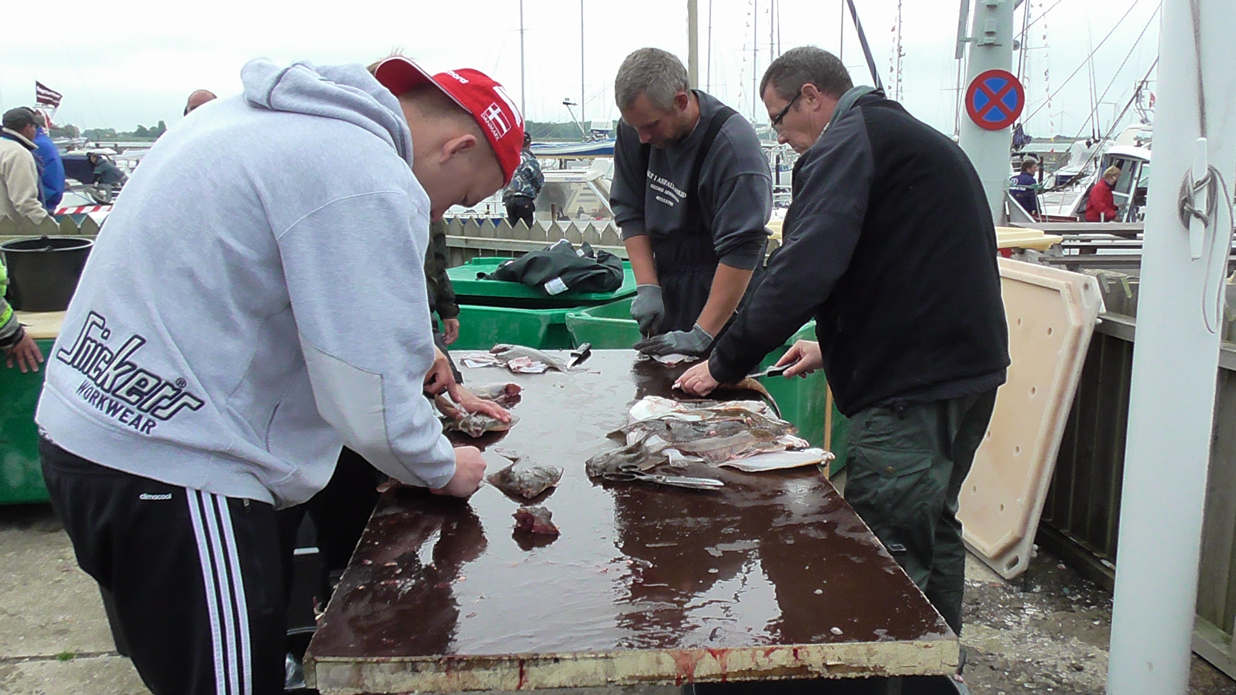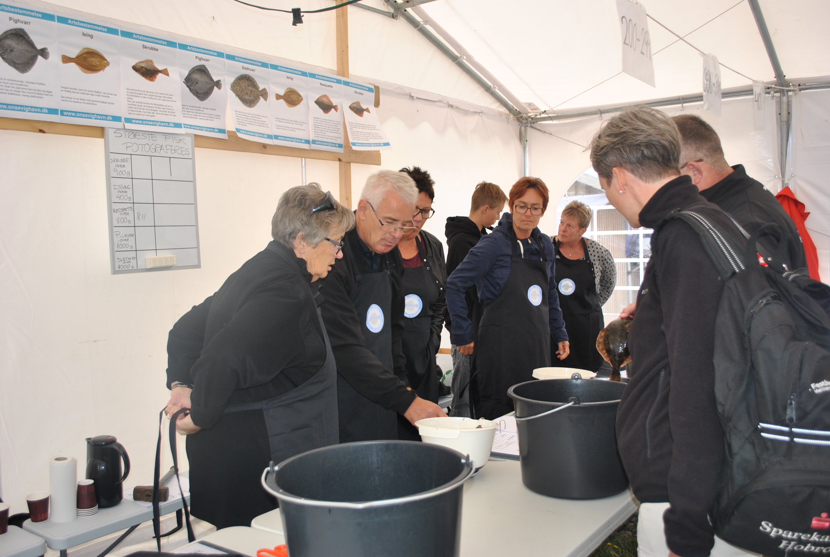 Lørdag eftermiddag/aften (190 fotos), indvejning, kåring af vinder af flå/fileterings konkurrence, gul føretrøje, aftensmad.