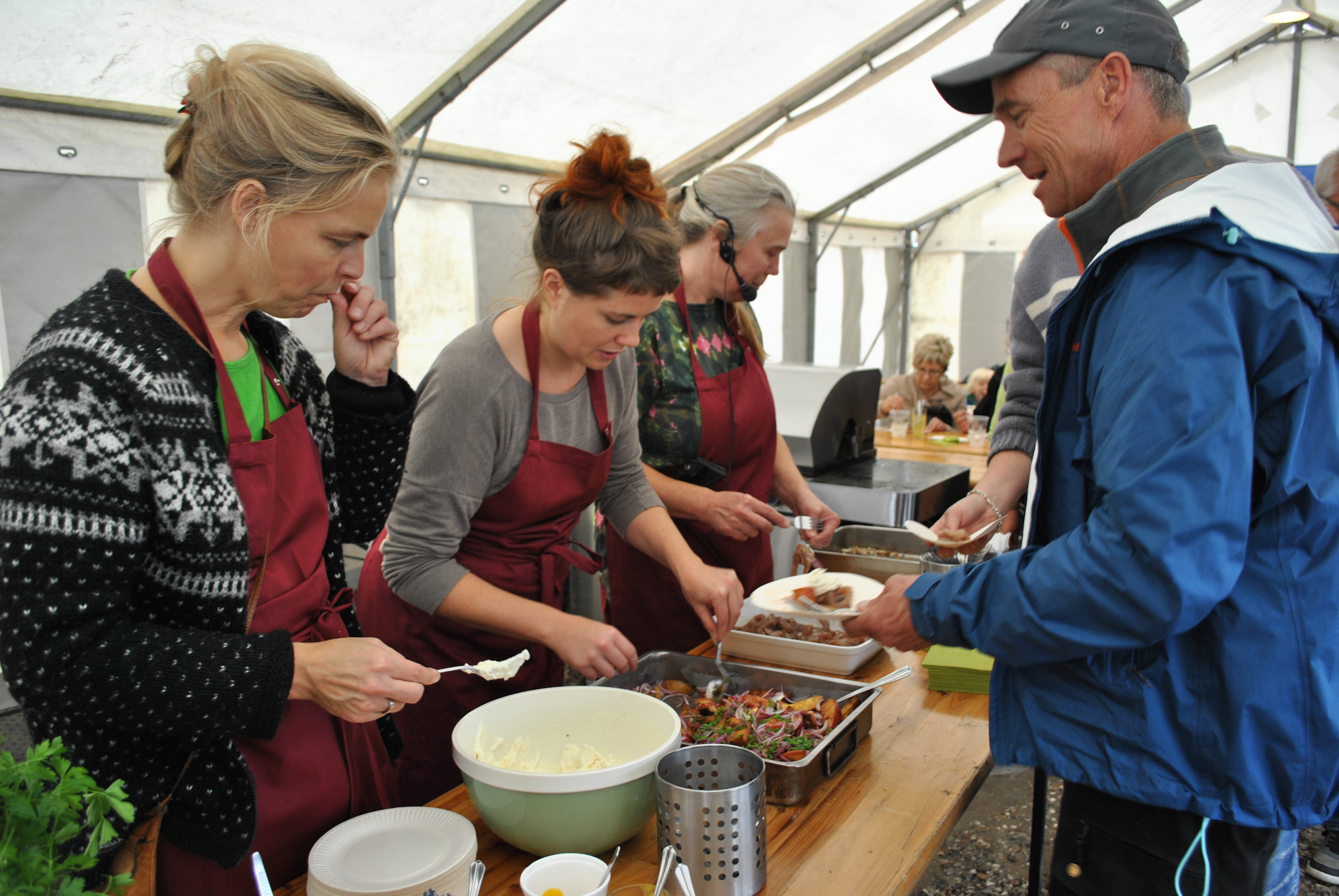 Søndag over frokost (57 fotos), Hanne madsen fra resturant den fuldkomne fisker laver mad i teltet på havnen.